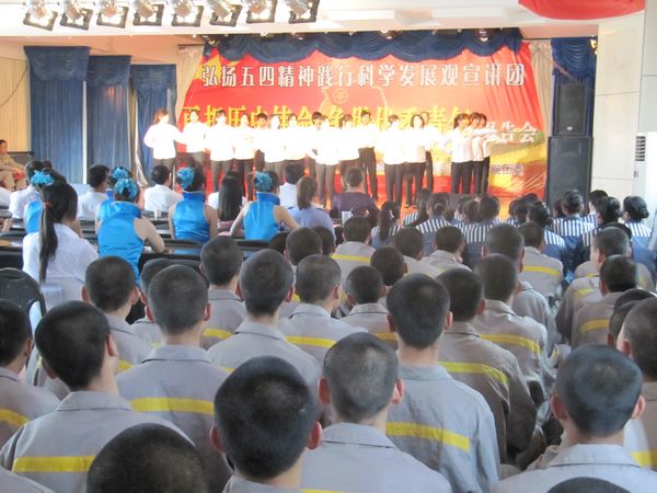 在以“勇担历史使命,争做优秀青年”为主题的报告会中,我院大学生宣讲团成员以质朴的话语、饱满的热情宣讲五四精神的内涵和科学发展观的要义以及“四个新一代”要求。他们发自肺腑的呼唤,真挚流露的感情激励和鼓舞着服刑人员自新,帮助他们重塑理想、恢复信心、坚定信念,从灵魂深处触动他们改造的热情。正如我院宣讲团成员所说的那样,我们青年一代无论置身何处、何境都应坚定理想和信念、自强不息,永不放弃,义不容辞肩负起振兴中华、富强国民的责任和使命,为构建和谐社会,创造美好家园而不懈努力,做祖国合格的“四个新一代”。