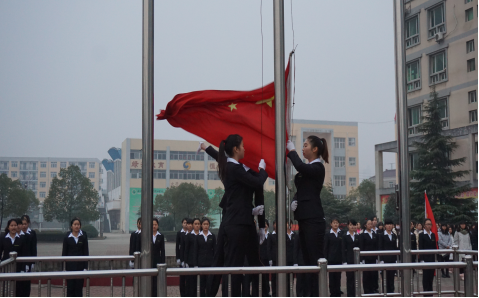 7点整,随着嘹亮整齐的口号声,会计系巾帼护卫队身着校服,脚迈正步,护卫着鲜艳的五星红旗整齐入场。在场师生齐唱《义勇军进行曲》,向缓缓升起的五星红旗行注目礼,仪式庄严肃穆。