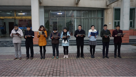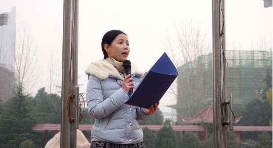 升旗礼毕,全体师生齐声诵读中华传统经典《孝经》,传统真理温暖心田,严寒之下激起了全场师生奋发上进、塑造高尚品格,对尽孝,对父母尽孝的热情。