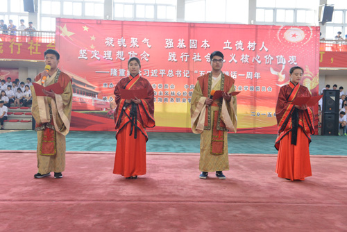 汇报表演活动开始,节目《千人诵经》气势恢宏、古朴儒雅,展现了中华优秀传统文化的魅力。《精忠报国》、《你的祖先叫炎黄》 等节目异彩纷呈,展示了学院培育和践行社会主义核心价值观的显著成果,体现了全学院全体大学生始终保持积极进取的人生态度、昂扬向上的精神状态和“爱国、敬业、诚信、友善”的道德品质,表达了全院师生成为“中华优秀传统文化的传承者、社会主义道德规范的实践者、良好社会主义风尚的创造者和推动实现伟大梦的生力军”的远大志向。