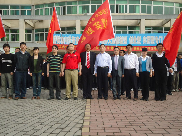 5月4日清晨,绿海学子在科技楼广场举行盛大集会,为隆重纪念成立九十周年,五四运动九十二周年,积极响应团、全国学联关于开展“弘扬“五四”精神 青春献给党”的主题活动的启动仪式。