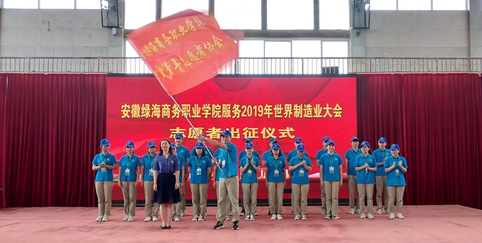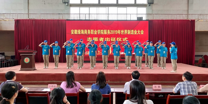 安徽绿海商务学院青年志愿者将以最一流的服务质量,最饱满的精神状态,在服务世界制造业大会中展示新风采、传播正能量,为合肥举办一届成功、精彩、难忘的世界性盛会贡献青春力量!