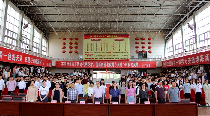 出征仪式上,经贸旅游系俞培同学作为志愿者代表发言,她呼吁志愿者要全心全意做好世界制造业大会的各项服务工作,为绿海学院展现出一张靓丽的名片。工商系李雪同学带领志愿者进行了庄严的宣誓,志愿者们承诺将以饱满的精神、高昂的斗志投入接下来的志愿活动,展现出绿海人的高素质和专业技能,为绿海争光。学生处处长陈萍为出征志愿团授旗。