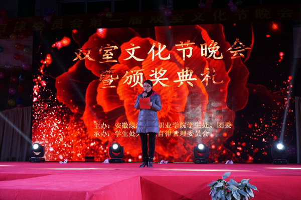 晚会开始,一段激情四射的开场舞瞬间带动全场气氛,主持人用热情的声音带动着全场师生。接着,在热烈的掌声中学生处处长钱曼丽上台致辞,她强调寝室教室是同学们日常学习生活中两个重要场所,打造一个良好的学习生活环境犹为重要。在本次评比中,许多班级、寝室同学都十分积极精心装扮,她对获得奖项的寝室和班级表示祝贺,并预祝晚会圆满成功。