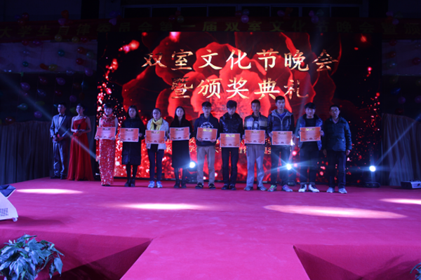 在本次双室文化节中设有优秀奖、三等奖、二等奖、一等奖、创意奖等奖项。在精彩的节目中穿插激动人心的颁奖时刻,大屏幕上播放着获奖寝室和教室的动感影集。在那个遥远的地方,傣族儿女尽情的欢歌笑舞,今天的舞台上也有这么一群美丽的少女,用舞姿述说着彩云之南的美丽,他们用笑容打动着所有人,彩云之国的美,在他们身上尽情的展现。在和平年代,也许我们体会不到当年日军侵略那个年代人们的心灵痛苦,话剧《国伤情》淋漓尽致的向我们展现了那个时代的无奈、愤慨、反抗。简单的剧情,震撼的话语,使现场的气氛变得愈发沉重起来,先人们用献血换来的和平生活,我们更应该珍惜,勿忘国耻努力学习,成为我们当代大学生理当承担的使命。