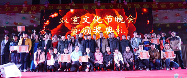 教室和寝室是同学们学习、生活的主要场所,也是传播信息,交流思想,探讨问题,展现自我的重要领域。教室、寝室成员的生活习惯影响着每一个同学的生活方式、学习态度、行为规范、价值取向,已行成独特的双室文化。作为学院第九届校园文化艺术节的重要组成部分,双室文化设计大赛经过精心准备和实施,历时近一个月,最终评定出相关奖项。12月16日晚,学院在大学生活动中心举行双室文化节晚会暨颁奖典礼。