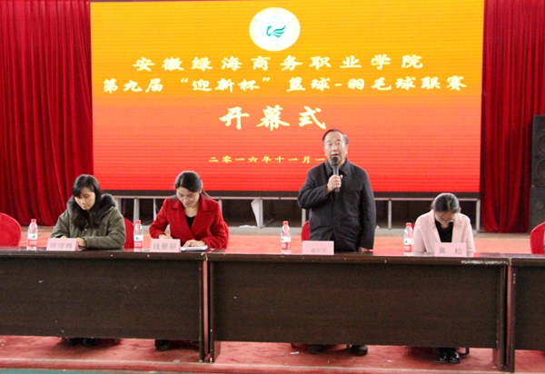 11月1日中午,学院第九届篮球、羽毛球联赛开幕式在体育馆二楼举行。基础教学部主任戴昭慰、学生处处长钱曼丽、各系团总支书记、体育教研室教师参会。