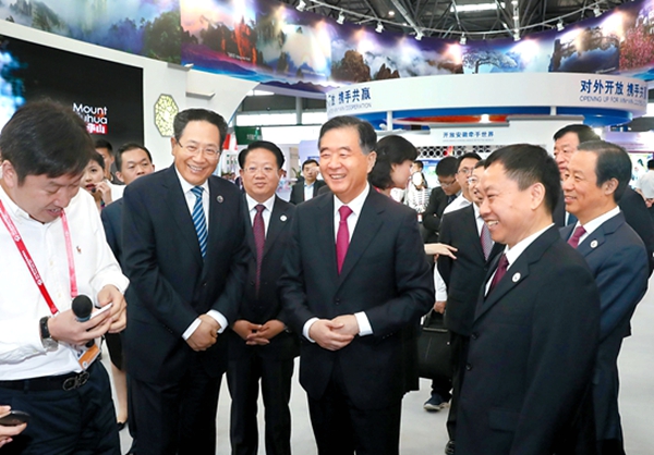 5月17日上午,政治局委员、副总理汪洋在省委书记李锦斌、省长李国英的陪同下,巡视了第十届中部投资贸易博览会展馆。