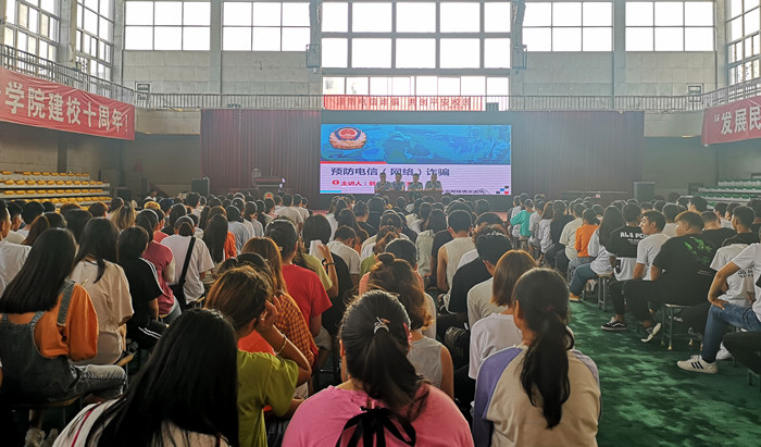 近年来,网络电信类诈骗案件高发,诈骗伎俩层出不穷,为进一步推动校园防范电信诈骗工作,9月11日下午,365集团在体育馆二楼举办大学生防范电信(网络)诈骗专题讲座,特邀合肥市公安局锦绣派出所韩成金警长、警官李玉成主讲。讲座由保卫处处长程光胜主持,各系部党团书记、全体辅导员和全体学生聆听了讲座。