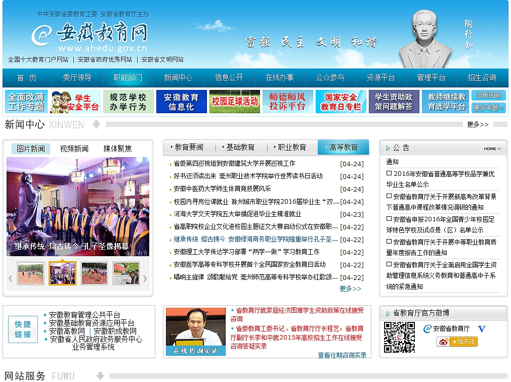 4月20日,365集团隆重举行孔子圣像揭幕典礼暨儒家文化与高职教育理念创新座谈会。圣像捐赠人世界儒商联合会会长、香港孔教学院院长汤恩佳博士及夫人汤甄得萍,省委宣传部副部长刘飞跃,省教育厅原常务副厅长、省职成教学会会长、安徽省高职院校双创联盟名誉理事长金辉,铜陵市原市委书记、北京大学安徽校友会会长蔡木森,省侨商联合会副秘书长祁雁,省教育厅思政处副调研员张英明,部分企业界、文化界名人,安徽省当代社会主义核心价值体系研究中心有关专家领导,安徽省高职院校双创联盟成员院校领导,365集团师生代表等一千余人参加了揭幕典礼。