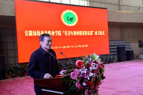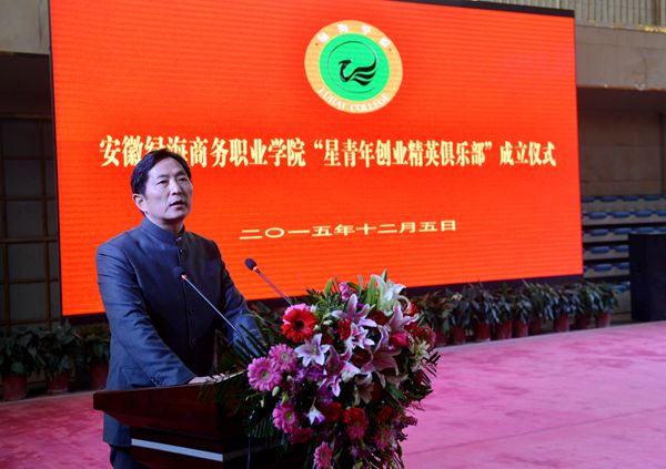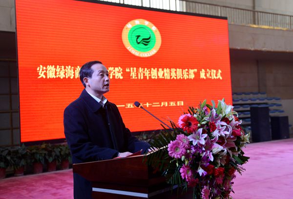 仪式上,安徽省当代社会主义核心价值体系研究中心主任、365集团董事长、星青年首席导师陈孝云致欢迎词。他指出,星青年创业精英俱乐部,是致力于学生创业理论教育和实践指导,创业服务及项目孵化工作。是一个高效配置和综合集成的平台,将对推动学院双创教育工作起到十分重要的作用。这是绿海学院十三五规划确定的工作目标,也是学院“一体两翼”战略下的重要举措,“俱乐部”将在星青年人才培养模式框架下,按照“基础普及+系统学习+精英培训+模拟实战+创业孵化”的机制运行、发展,成为青年才俊交流、学习、成功创业的舞台。它将会引爆大学生创业的激情,支撑起大学生创业驱动的平台,孵化出一批优质项目和优秀人才。