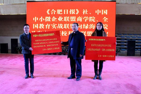 省教育厅原常务副厅长、省职业与成人教育学会会长金辉到会祝贺并作了重要讲话。他认为,成立“俱乐部”很有新意。大众创业、万众创新,是战略也是职业教育的主旋律,中小微企业联盟商学院、全国实战教育联盟商学院赠送绿海学院培训课程,对绿海学院师生都有很大的启示和帮助。许多高校的领导领导都参加今天这个会议,会后还要围绕大学生的创新就业专题进行研讨。种种措施一定能培养出具有实战能力的创新创业人才。最后,勉励绿海学院通过各种形式,把现代职教之路,改革发展之路,越走越宽广,让安徽的学子们成功创业就业,创新发展,成就人生。中小微企业联盟商学院、全国教育实战联盟、学院星青年创业精英等单位领导和代表分别发表了热情洋溢的讲话。