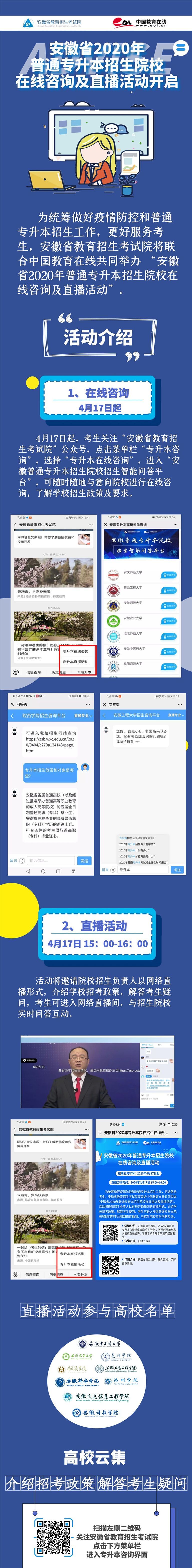 安徽省2020年普通专升本招生院校在线咨询及直播活动开启