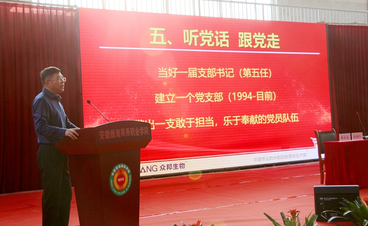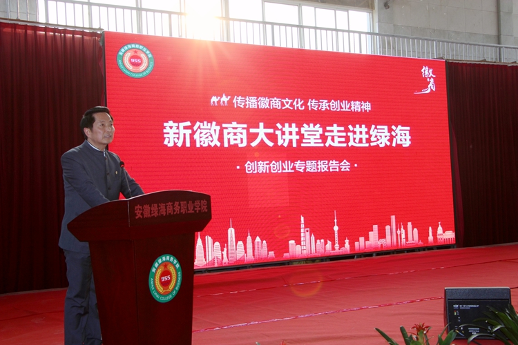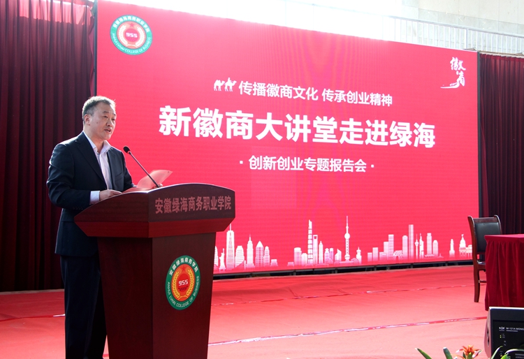 随后在院主要领导陪同下,企业家一行走进绿海活动中心,为绿海学子带来一场精彩纷呈的新徽商大讲堂主题报告。常务副院长主持,仇冬代表学校致辞,表示新徽商大讲堂为绿海带来了先进思想与文化,带来了生机与活力,为推动我院文化内涵建设、创新创业工作高质量发展起到促进作用。