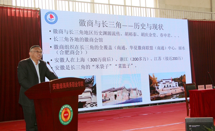 为认真贯彻落实习近平总书记系列讲话精神,积极响应文化强国战略,推动实施《中华优秀传统文化传承发展工程》,推动徽商文化与徽商精神在高校校园传播与传承,促进校企合作、推进产教融合。15日下午,我院特邀请新徽商杰出企业家莅临绿海,开展以“传播徽商文化 传承创业精神”为主题的《新徽商大讲堂》活动。新徽商大讲堂创始人、安徽财经大学新徽商研究中心主任王唤明,安徽郁金香新能源科技有限公司董事长、合肥新能源行业协会会长李多德,安徽国兰网络科技有限公司董事长杜涛,安徽众邦生物科技有限公司董事长黄自云,合肥三河四子集团总经理孔令好,合肥双信电器有限公司董事长刘建河应邀莅临。365集团董事长陈孝云,督导专员、党委第一书记江传瑞,常务副院长仇冬,党委委员、文化总监张以亭,,院长助理陈艺鸣等出席了此次活动。