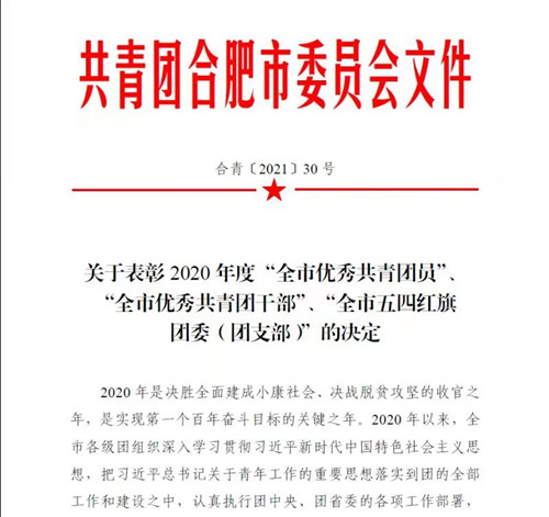 喜报|365集团团委获2020年度“合肥市五四红旗团(工)委”称号