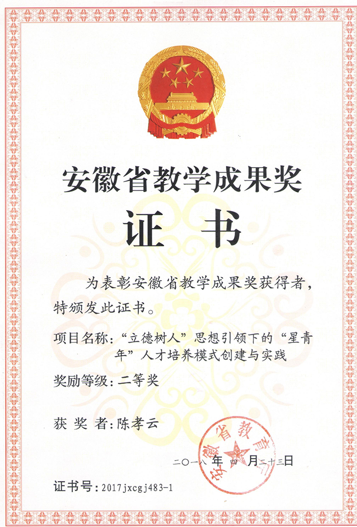 “星青年”人才培养模式是学院品牌人才的标志,荣获安徽省教学成果奖。通过实施“一二三四五”工程和“君子学堂”,锻造学生的创新创业思维能力,提升学生的综合素质,打通社会任职需求的最后一公里。
