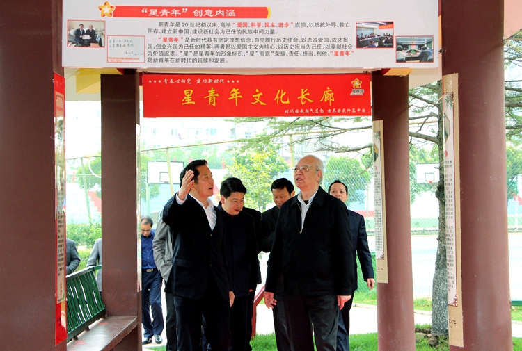 孙学策说,“孝”是中华民族的传统美德,“孝”是德之本,也是“十德”的重要组成,你们以孝立德,这就找到了核心,抓住了根本。尤为可贵的是,你们能深入挖掘孝德文化的时代内涵和育人价值,就赋予了孝德文化传承的生命力,这就是与时俱进、主动创新。学院以“十德”建路命名,并且全面深刻阐释了“十德”的核心要义,将“十德”文化进行集中展示,对师生进行潜移默化的教育,十分有利于“十德”文化的内化于心、外化于行。星青年文化广场是文化育人的创新工程,杰出的历史人物、重大的历史事件背后呈现的是一座座文化高峰,一面面思想旗帜,从这里我们能感受到中华文化的博大精深、源远流长。在古代先贤的思想的传承上,你们思考得很深刻、凝练得很精准,更有利于师生学习理解,更有效的引导师生自觉践行,这就是文化的“创造性传承和创新性发展”,十分值得学习借鉴。