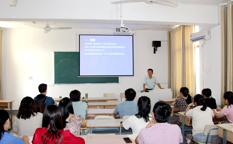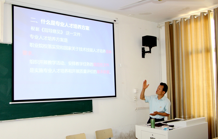会上,亓四华首先就专业人才培养方案进行专题讲座,重点解读了《教育部关于职业院校专业人才培养方案制订与实施工作的指导意见》,从专业人才培养方案的定义、作用、基本要素及内涵、基本要求、制订程序、实施要求、本次指导意见的特点、如何体现本校专业特色等八个方面进行详细阐释。并且通过理论讲解与案例分析结合的形式,对学院如何科学构建职业教育课程体系进行系统、全面的指导。亓四华指出,专业人才培养方案是职业院校落实党和国家关于技术技能人才培养总体要求、组织开展教学活动与安排教学任务的规范性文件,是实施专业人才培养和开展质量评价的基本依据,强调了人才培养方案制订的基本要素、内涵及重要意义。