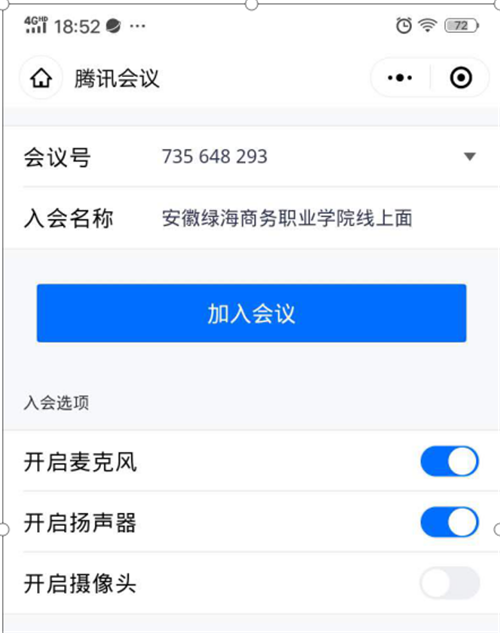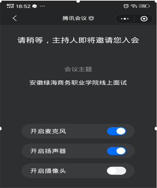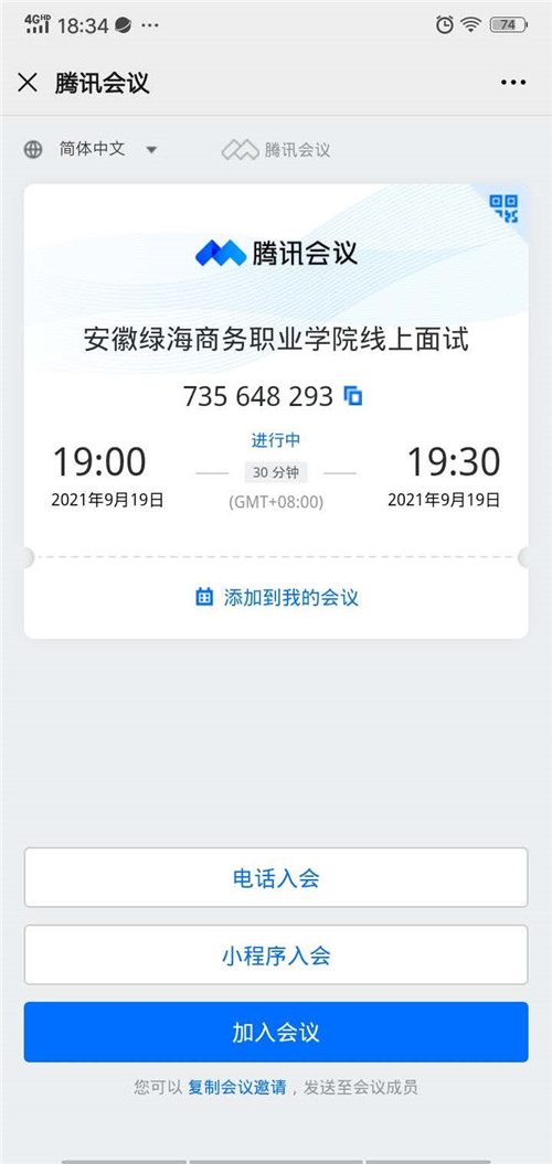 (2)考生提前下载最新版腾讯会议APP或登录腾讯会议微信小程序,加入工作人员提供的腾讯会议号(工作人员将在线上面试前一天告知考生腾讯会议号)。