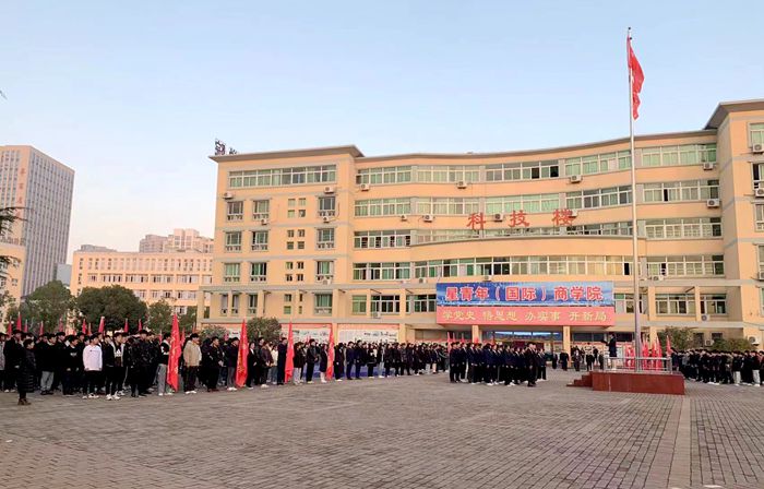 11月29日清晨,由工商管理学院承办的365集团第五次升国旗仪式在科技楼广场举行。学院董事长、党委书记、星青年总培训师陈孝云,学院党委委员、文化总监张以亭,各处室负责人、教师代表、全体学管老师及大一大二学生参加此次升国旗仪式。仪式由工商管理学院党支部书记高彩霞主持。