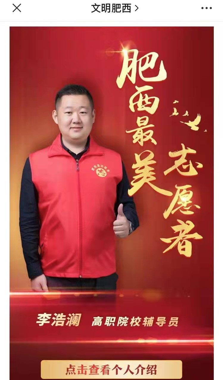 热烈祝贺我部教师荣获肥西县“最美志愿者”称号,列如下: https://mp.weixin.qq.com/s/DPTKRzjCYm8hFPU6qkRP1w