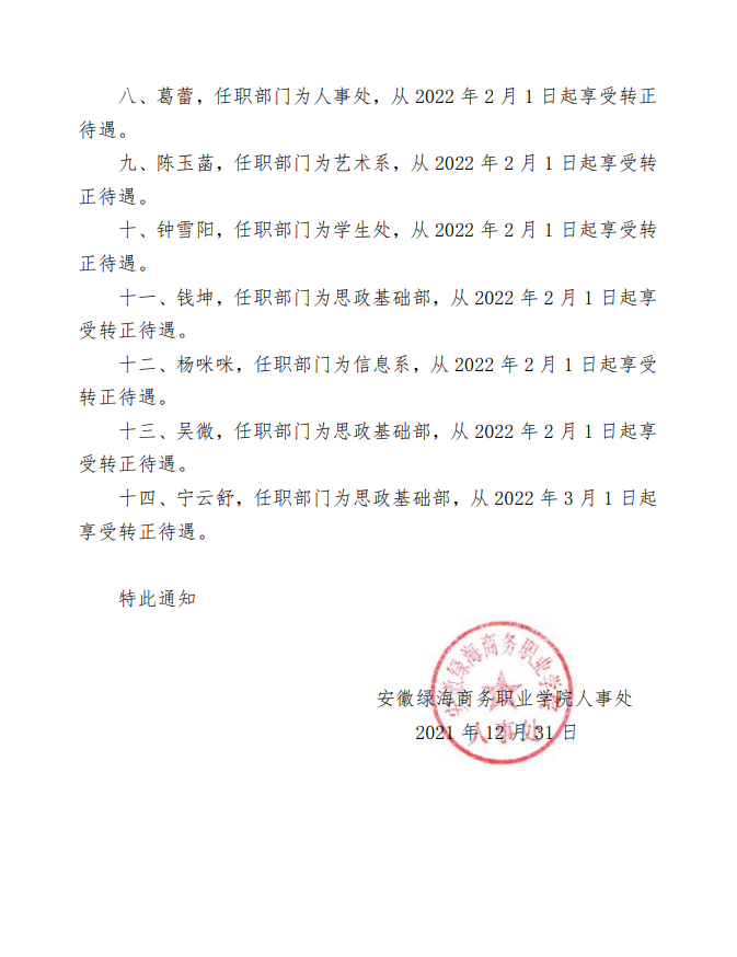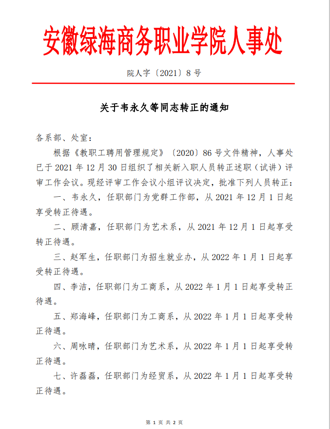 关于韦永久等同志转正的通知