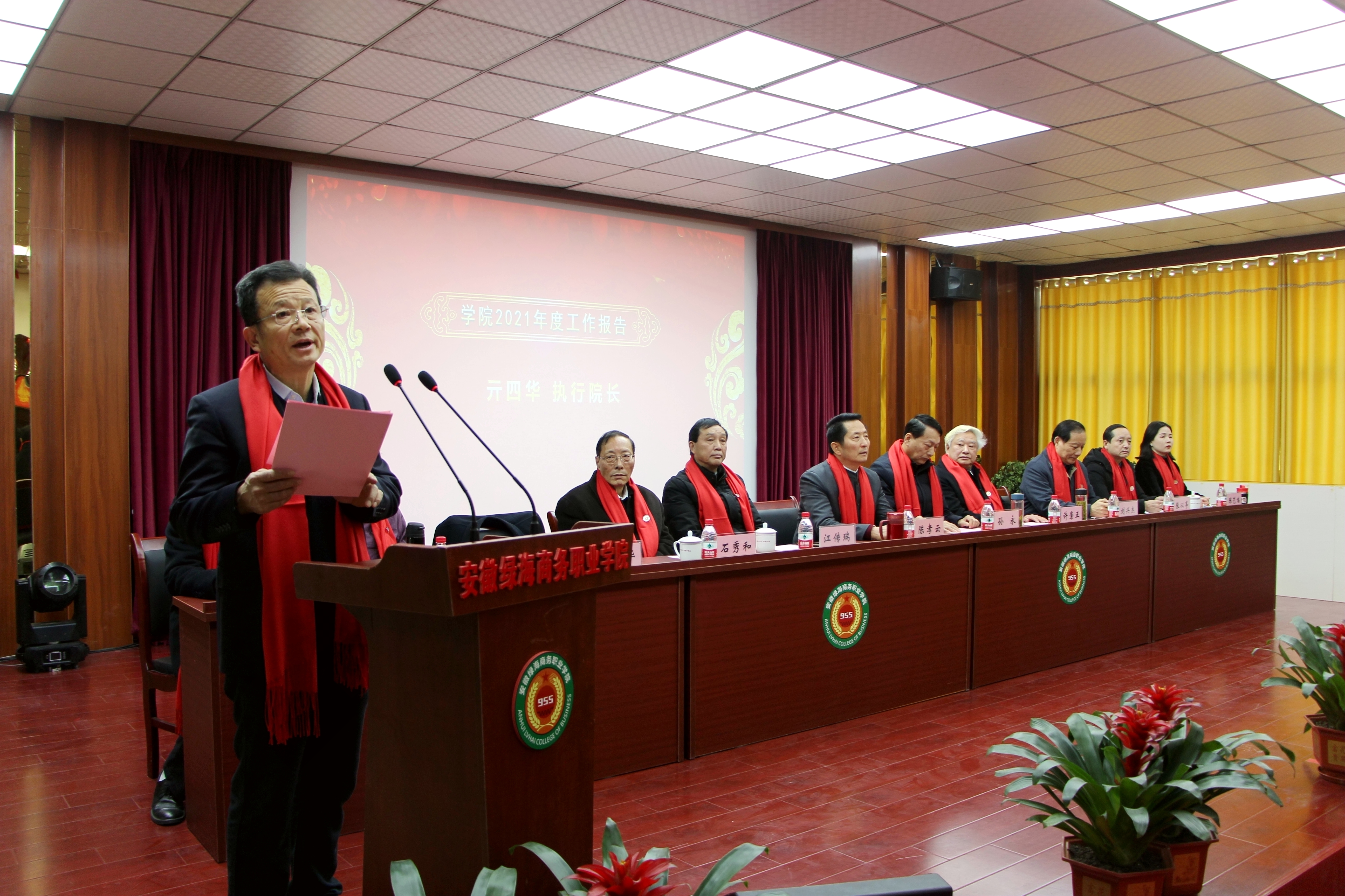 会上,亓四华作2021年度学院工作报告。他指出,2021年是学院全面深化教育综合改革、全力推进转型发展的攻坚之年,全院师生员工深入学习贯彻习近平新时代中国特色社会主义思想和党的十九大精神,凝心聚力、开拓创新,各项事业不断取得新突破、呈现新气象。报告分别从党建引领焕发新气象、“三全育人”取得新成效、人才培养水平迈上新台阶、学生教育管理开创新局面、师资队伍建设再上新水平、招生就业取得新突破、新闻宣传展现新作为、文化育人凝聚新力量、综合服务保障呈现新面貌等九个方面,全面回顾了2021年的工作成绩。
