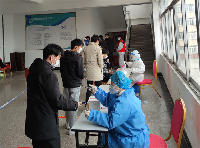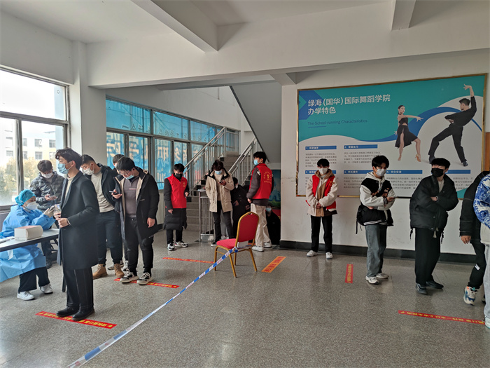 同学们在志愿者的引导、指导下,有序进行核酸检测,大大提高的检测效率,比原计划提前了3个小时完成了检测任务。