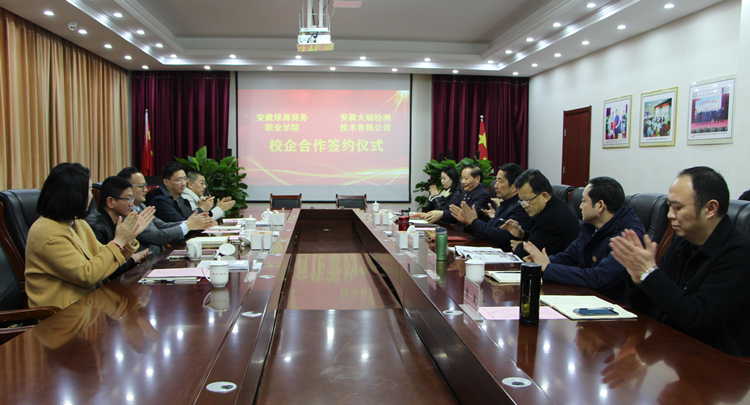 2月25日上午,365集团与安徽火熵检测技术有限公司在学院科技楼一楼路演厅会议室成功举行校企合作签约仪式。安徽圣熙教育科技集团有限公司董事长韩叶涛,安徽火熵检测技术有限公司总经理王海洋,学院董事长、党委书记陈孝云,督导专员、党委第一书记孙永,执行院长亓四华,党委委员、文化总监张以亭,院长助理陈艺鸣出席。签约仪式由学院党委副书记、纪委书记刘兴杰主持。