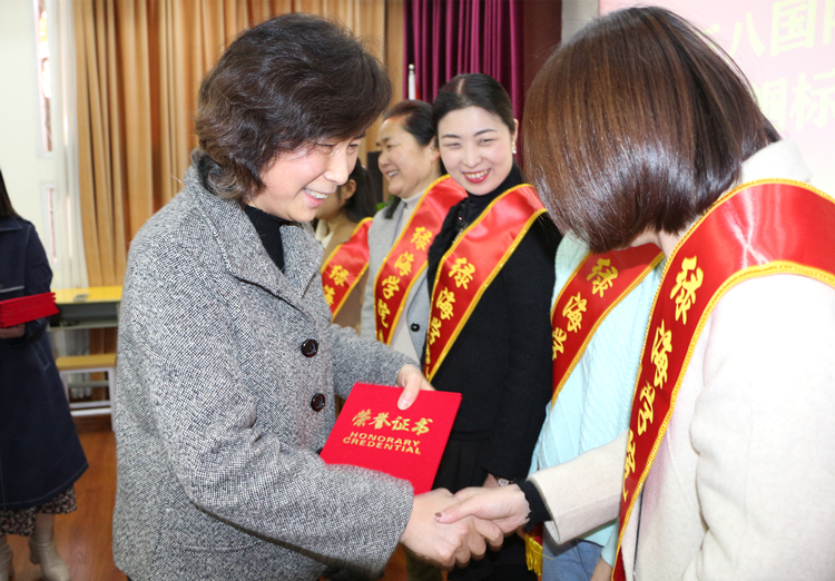 孙永宣读“巾帼标兵”表彰决定,喻小红教授等7人被授予学院“巾帼标兵”荣誉称号。孙永、史锋为获奖者颁发证书,并送上奖金鼓励。