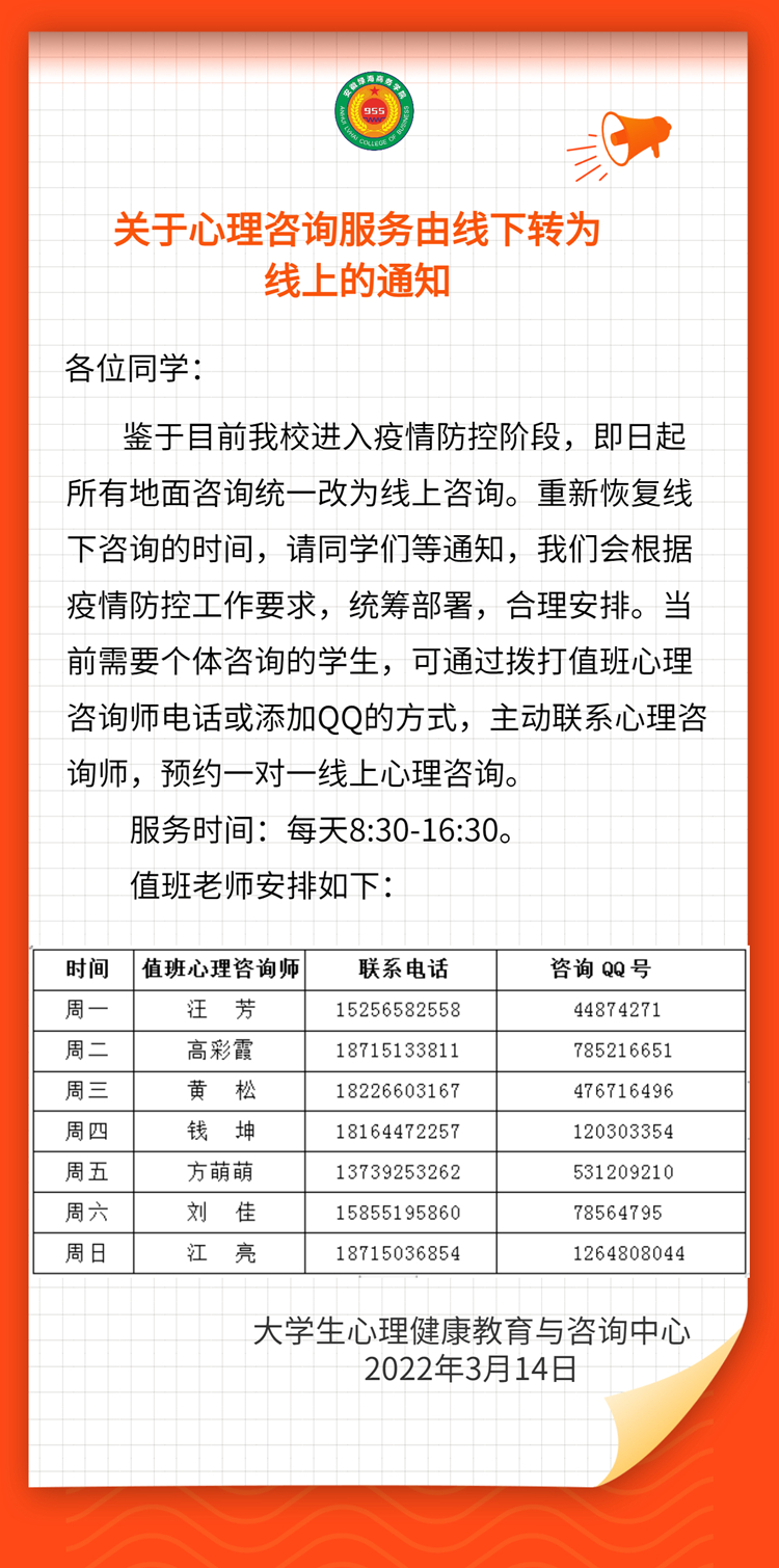 封校不封心,学院始终把全体师生的身心健康放在首位,开通线上心理咨询途径,同时做好师生的心理危机干预与评估工作,为师生的心理健康做好保障。