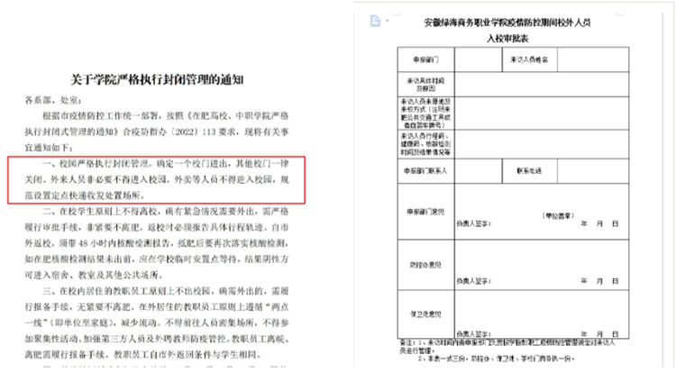 严守疫情防线。学院实行封闭管理,外卖禁止入校,校外闲杂人员一律禁止入校,因公来访人员需提前与院防疫办审核报备。