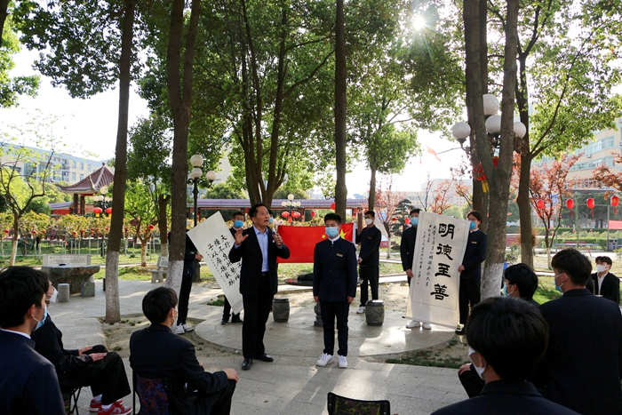 课堂上,陈孝云给学生带来一场生动的思政教育课。他以个人经历为例告诉大家,人因梦想而伟大,希望同学们都能成为优秀的人、成为可以感染他人的人、成为岗位上不可替代的人。以树木生长为例,告诫大家要将理想信念教育根植大地,要秉持坚定的爱国主义情怀,正直的做人态度,向上奋发努力拼搏,做到枝繁叶茂时仍不忘来时路。他对青年大学生寄语厚望,表示学院将继续坚定不移贯彻星青年人才培养模式,为绿海学子成长成才提供良好环境与平台,要求同学们以本次课程为契机,坚定信念、汲取力量,从经典中追思古圣先贤,从英雄事迹中缅怀革命先烈,从而引领人生的方向,塑造优良的星青年品格,实现自己的人生梦想。