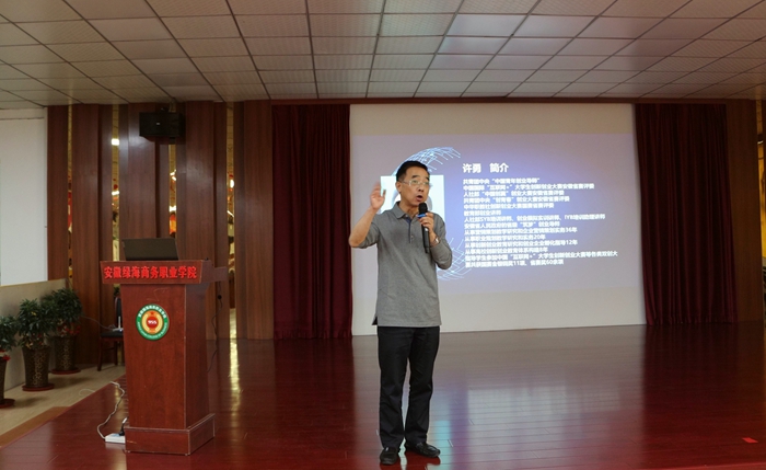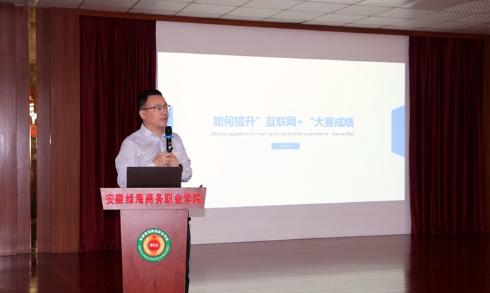 刘沛平就“互联网+”大赛文件进行解读,详细介绍了大赛的发起、发展以及安徽省内高校近几年国赛中的表现。并预祝绿海学子在今年“互联网+”大学生创新创业大赛中取得好成绩。