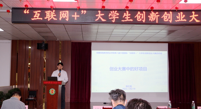 宋红彪以《如何打造“互联网+”大赛好项目》为题,为学院参赛项目团队带来重要的赛事经验和干货分享,详细讲解了商业计划书构成和撰写、创业计划呈现、如何讲好一个创业故事,分析了近年来的一些优质项目。他鼓励各二级学院把赛事训练到位,积极动员挖掘优秀项目,把项目成果商业化,挖掘商业价值和社会价值。