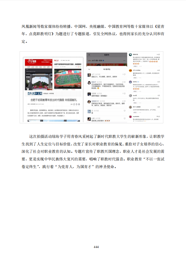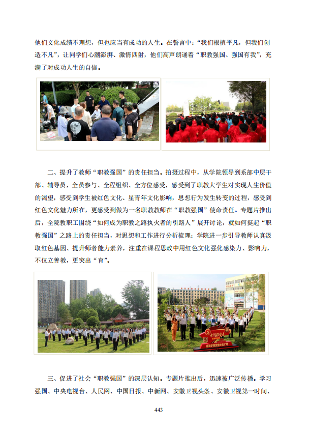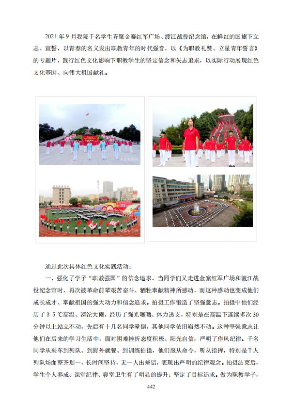 案例《用红色基因培育职教星青年》系学院文化育人典型案例,阐述了学院针对职教大学生思想特点,注重以红色基因引领学生树立远大理想、培育高尚道德、锤炼强国本领、锻造坚强意志,让他们树立自信人生,立志成为大国工匠,并在实践中积淀形成了特有的星青年文化,成为学院文化育人的鲜明特色。