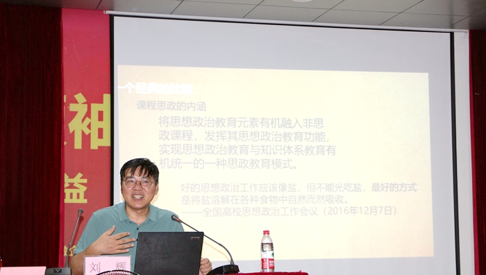 刘辉教授的讲座春风化雨、润物无声,给老师们以思想上的引领。以思考课程思政的目的为系统发力点,分析了教师要把知识教育同价值观教育、能力教育结合起来,把思想引导和价值观塑造融入到每一门课的教学之中,实现“一次课与课的邂逅”。