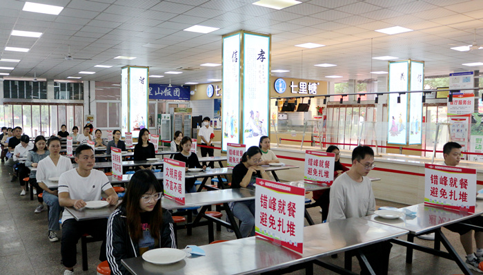 演练共分为实地演练、桌面推演两个环节,对学生返校报到工作进行了一次全方位、全流程的应急实战演练。实地演练环节,在校门口模拟了学生入校各项流程及出现体温异常、健康码异常等情形的处置程序;在食堂模拟学生实行错时、错峰、分散、相对隔离就餐,及在就餐过程中有人突发不适时的应急处置预案。桌面推演设置模拟八个场景,通过问答形式,检验各部门和二级学院在应对突发状况时的快速反应能力、应急处置能力和协调作战能力。演练全程环节紧凑,各部门分工明确,过程高效有序,各项演练任务顺利完成。