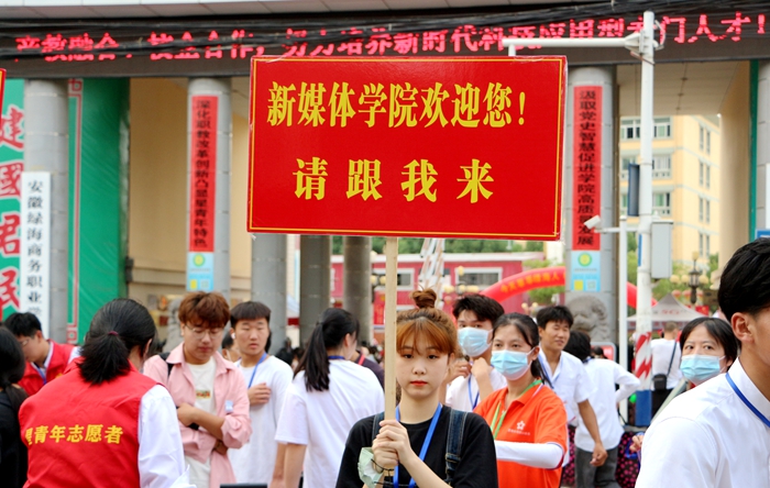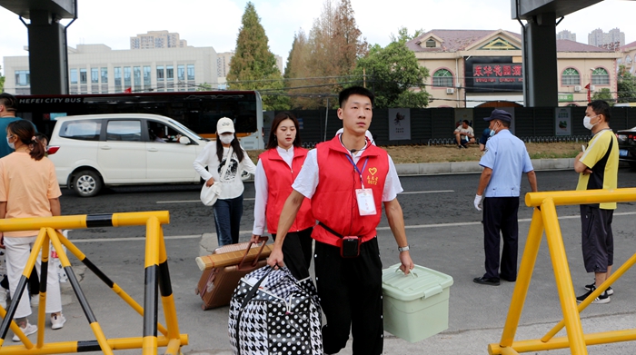 在井然有序的接站工作现场,总会看到身着“星青年红”志愿服的学生们在为新生用心引导与搬运行李,他们由学院青年志愿者、团委学生会、学生社团联合会学生干部等组成。传递爱与责任,是学院“星青年志愿者”的使命,让更多的绿海小萌新,从来到合肥这一刻起,爱上绿海。