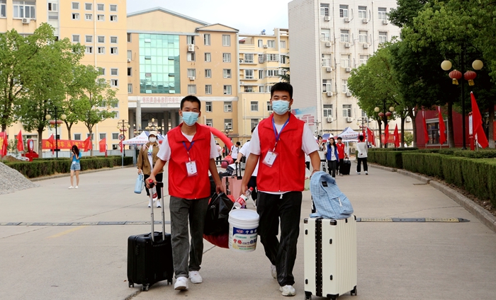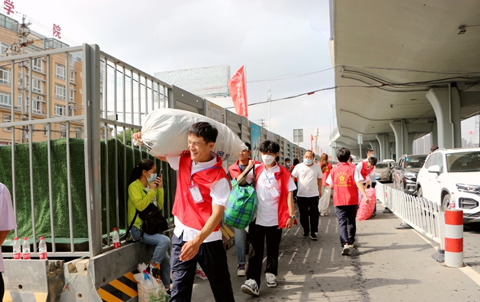 秋风微凉,绿海的校园里情意正浓。因为疫情防控需要,家长谢绝入校,学院特意安排了星青年志愿者守候在学校门口,从学生下车那一刻起,就热情有序地接过行李,一路护送到校园内各二级学院报到处。