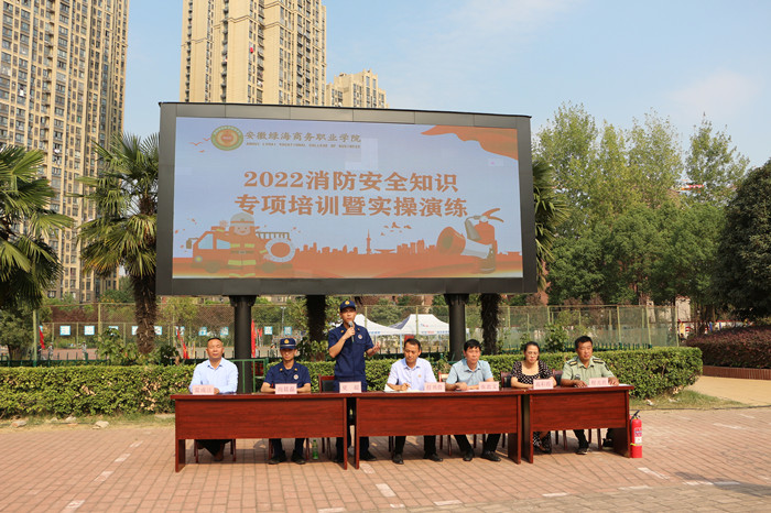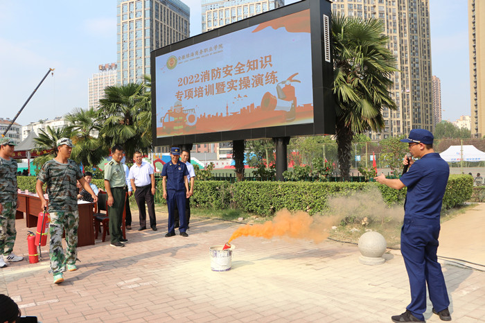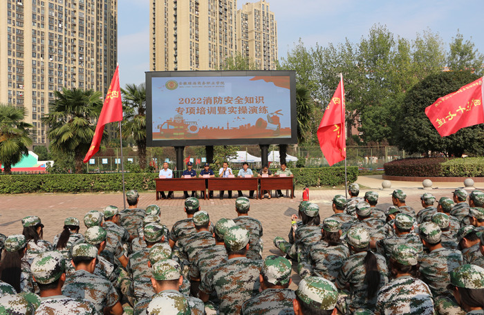 为进一步强化和提升师生消防安全意识和避险自救能力,提高对突发火灾事故的快速反应及处置能力。9月26日下午,365集团联合辖区消防救援大队共同在学院科技楼广场开展2022消防安全知识培训暨实操演练活动。学院党委委员、常务,合肥经开区消防救援大队夏超教官,学生处、保卫处、征兵工作站、宣传部等相关处室负责人,大一新生及辅导员、后勤食堂工作人员等参加。学院副院长张忠文主持活动。