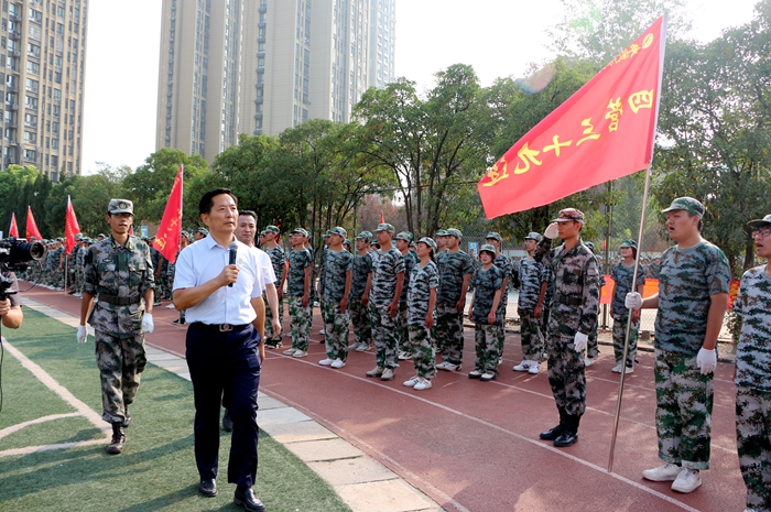 常务副院长、军训团团长常务副院长对军训进行总结发言,对为军训付出辛勤汗水的教官和辅导员老师们表示衷心感谢,向敢于吃苦、奋力拼搏,顺利完成军训任务的全体同学表示热烈祝贺。他认为军训是一次树立信念、砺练品质的良好机遇,希望同学们将军训中所表现出来的顽强拼搏、争创一流的精神,转化为立志成长成才的精神动力,转化为刻苦学习的具体行为。以强烈的求知欲望和奋发进取精神,聚焦成为新时代星青年,敢于有梦,勤于追梦,勇于圆梦,以优异的成绩向党的二十大献礼。