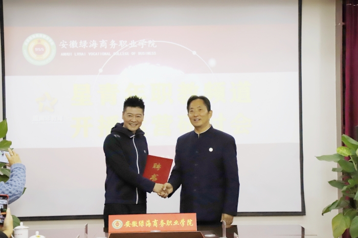陈孝云董事长对洪涛老师莅临学院,并担任客座教授表示热烈欢迎。他指出,一直以来,学院秉承人才是学院发展第一资源理念,坚持引育并举,坚持把师资队伍建设与“人才培养、产学研究、服务社会、文化传承”紧密结合。洪涛老师是全省知名主持人,专业造诣深厚,深受社会喜爱,洪涛老师的到来,将为绿海学院职教事业注入新鲜血液和发展动力。为增强社会对职业教育的认同感与归属感,学院计划开通“星青年”职教频道,打造新时代职教宣传自媒体平台。希望洪涛老师结合自身的工作实践,今后在学院职教宣传品牌建设、新媒体产品制作与传播、人才培养等方面给予更多的指导与帮助,为学院高水平职业大学建设贡献智慧和力量,不断提升学院办学水平和品牌影响力。