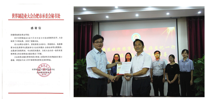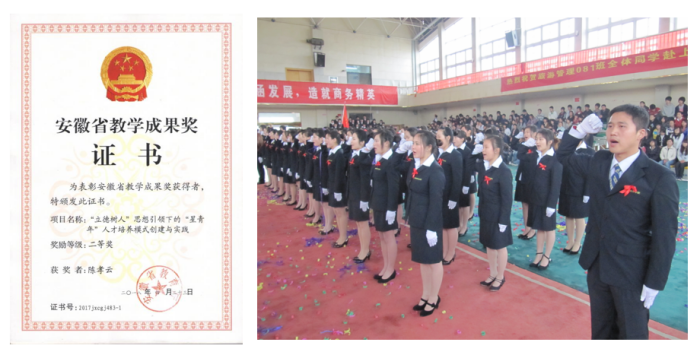(左图为学院星青年人才培养模式获安徽省教学成果二等奖;右图为赴世博会服务的绿海学子整装待发)