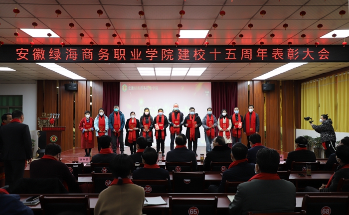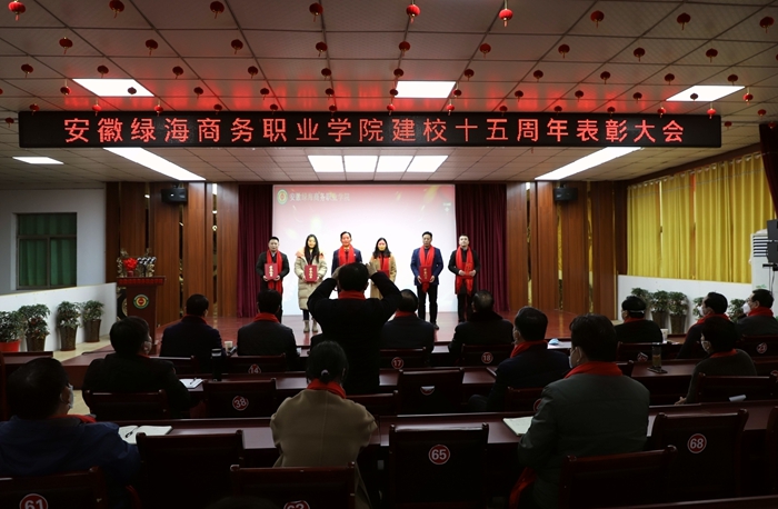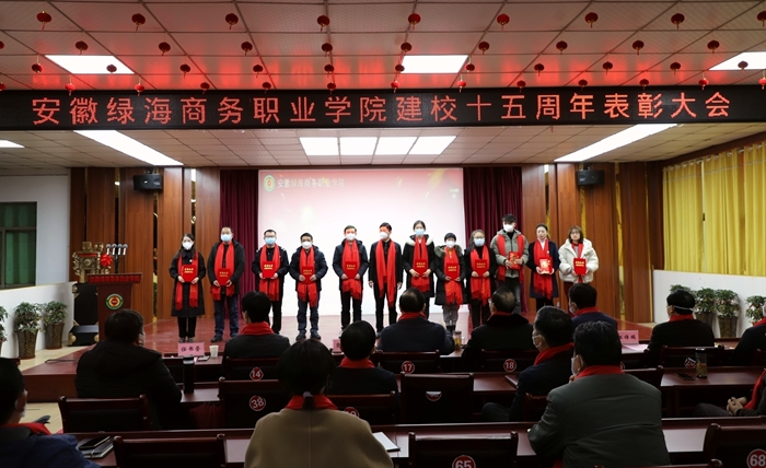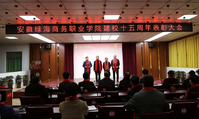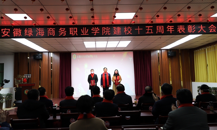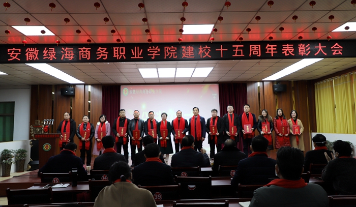 石秀和宣读建校十五周年表彰决定,张义廷等15人、许勇等3人、陈艺鸣等5人、马超等22人分别获得“15周年校庆员工表彰奖”“岗位贡献奖”“特别贡献奖”“绿海标兵奖”表彰,学院领导为获奖者颁发荣誉证书和奖金。