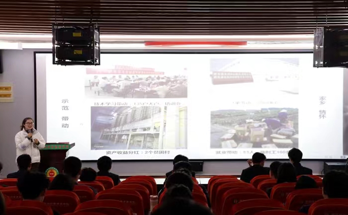 宣讲会上,胡盼盼老师分享了《志身广阔田野 同样大有作为》的主题内容,阐述返乡创业直播带货新农人的心路历程。胡盼盼老师指出,田野里有辛勤劳动的汗水,也有收获之后的朗朗笑声。如何运用直播电商助力农产品,让更多产品走入千家万户?如何立足当地资源优势,运用互联网思维和新产销模式,实现“农产品进城”“农产品入户”,为振兴乡村产业、推进乡村振兴,注入强劲新动能是摆在我们面前的两大课题。随着“中央一号”文件的出台,电商直播快速发展,直播专业的就业前景十分广阔。最后,她鼓励广大学子以梦为马,不负韶华。