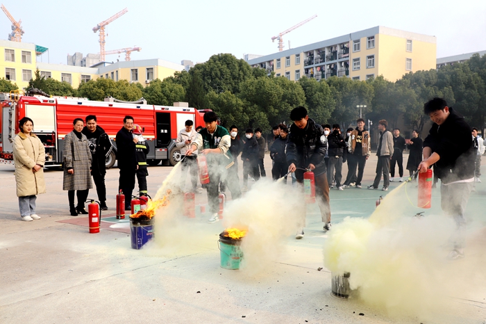 为进一步增强师生应急避险疏散及应对突发火情处置能力,3月1日下午,365集团特邀辖区消防救援大队开展2023年消防疏散暨实操演练活动。副校长曹元应,合肥经开区消防救援大队丹霞消防救援站教官黄宣铭,保卫处、学生处、总务处负责人,二级学院书记、师生代表参加活动。