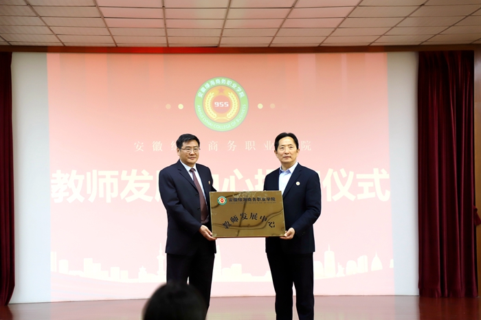 执行校长、教师发展中心主任许信旺接受授牌并讲话。他阐述了教师发展中心成立的意义,对教师发展中心下一步工作指出了思路,表明了工作态度,提出了具体要求。他指出,教师发展中心将以学校高质量人才培育为基本出发点,以打造适应新时代职教和学院高质量发展的师资队伍为目标,建设落实星青年导师培养方案,以“服务·引领·成就”为宗旨,以“激发教师潜能、打造特色团队、提升技能水平、倾心社会服务”为重点,多方面、多层次、多角度、有针对性地开展教师培养培训工作,为教师发展提供专业化的知识、服务与支持,促进教师专业水平、教学科研能力的提升,满足学校特色办学和特色人才培养需求。