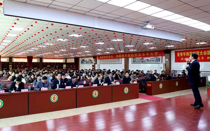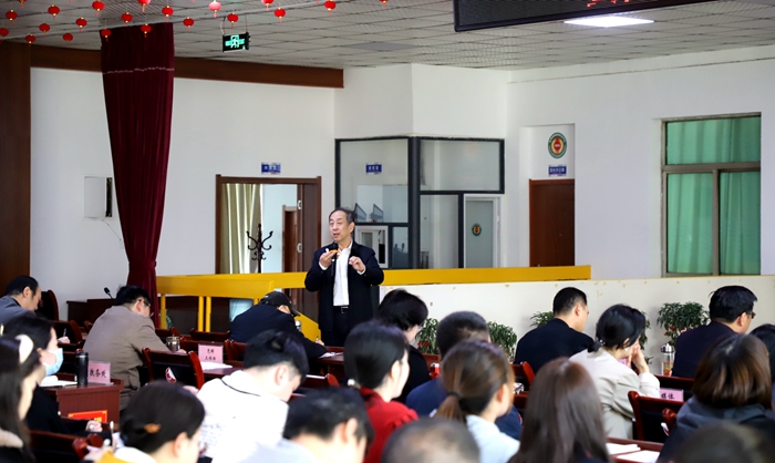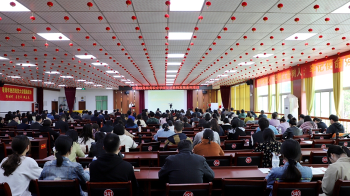 随后,覃川教授为全体教师作了《今天怎样做教师》专题讲座。从教育教学新理念、课程改革新模式、教学模式新探索、教师发展新目标等方面进行深入讲解。他从“初心”出发,由浅入深、由形入神地阐释了教师职业的神圣感、使命感与价值感。他深入剖析了教师发展存在的主要问题,通过生动案例、多媒体展示、互动交流等方式详细探讨了“什么是教师”“什么是好教师”“什么是职业院校的教师”等问题,引发了与会教师对“三教改革”和人才培养等问题的交流和思想碰撞。覃川教授指出,要加强“双师型”教师队伍建设,加大教材开发力度,及时更新教育教学内容,重视教学资源开发利用,加强信息技术在教学中的应用,全面推进教学方式方法改革,重视新技术、新工艺、新理念在人才培养中的应用,全面推进学生和教师的共同成长。